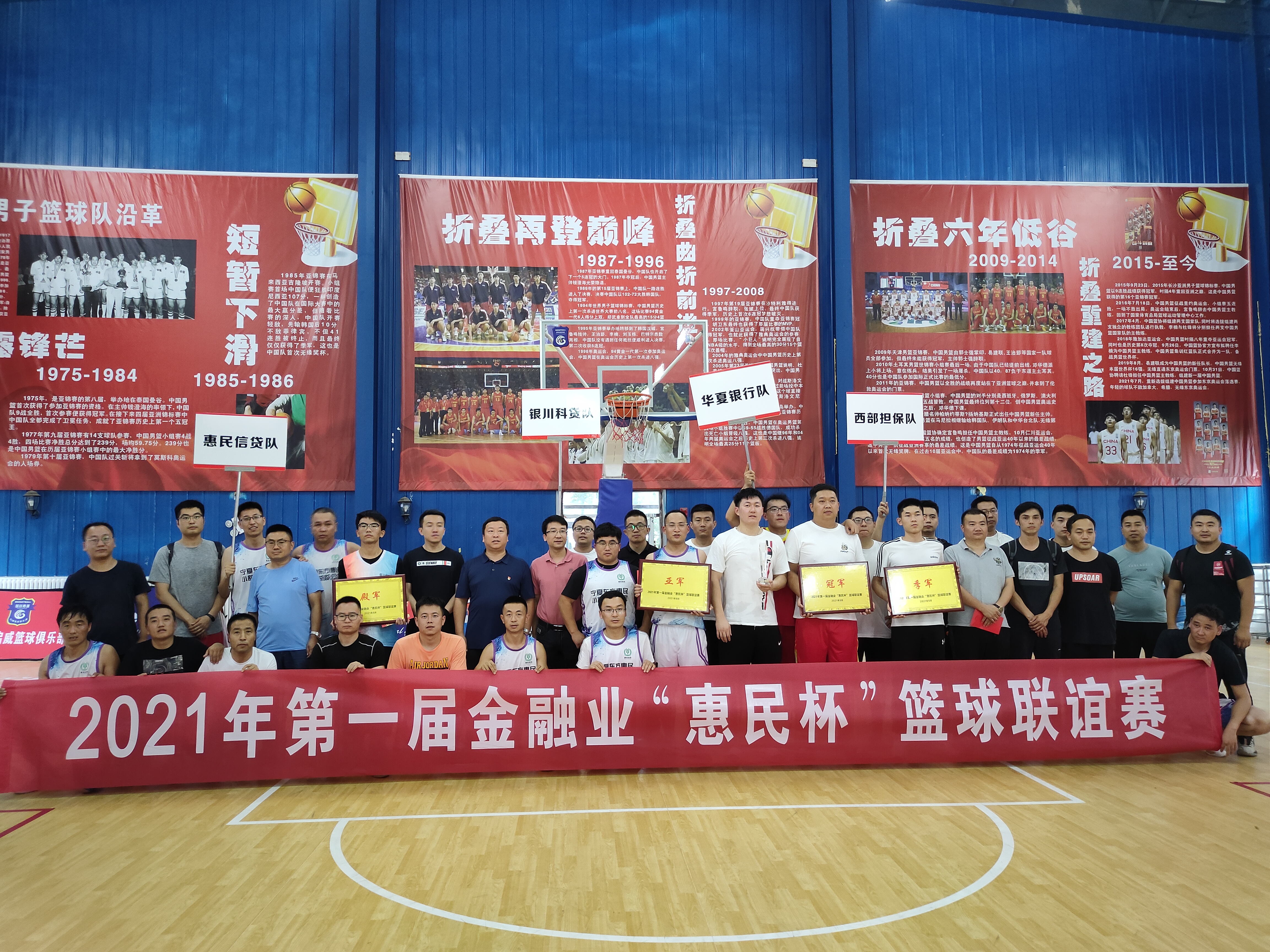 2021年8月21日,惠民公司2021年第一届金融业“惠民杯”篮球联谊赛在银川市金凤区启威体育馆举行,此次篮球比赛由宁夏东方惠民小额贷款股份有限公司主办,共有华夏银行、西部担保公司、银川科贷、惠民公司四家单位参加比赛。