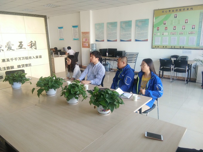 2017年6月8日,中化农业金融事业部总经理助理胡义、金融事业部黄晨辉一行,来宁夏东方惠民小额贷款股份有限公司同心分公司进行实地调研。
