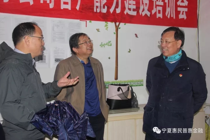 在村中心,龙治普董事长向开行来宾介绍了惠民公司发展历程、信贷模式、信贷风险的防范。接着,由西吉分公司主任周成发引导来宾参观龙王坝村中心,就一些开行资金的使用情况,客户的经营致富事例,村组建设等向来宾一一做了讲解。