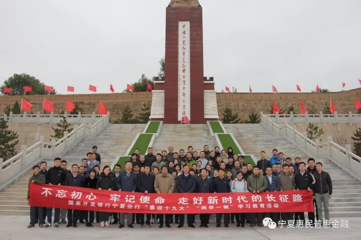 2017年10月24日,国家开发银行宁夏分行行长张道洋带领宁夏分行全体员工赴西吉开展“喜迎十九大”“两学一做”为主题的革命传统教育和扶贫教育学习活动。先后到西吉将台堡红军长征纪念馆和惠民信贷西吉分公司进行参观。