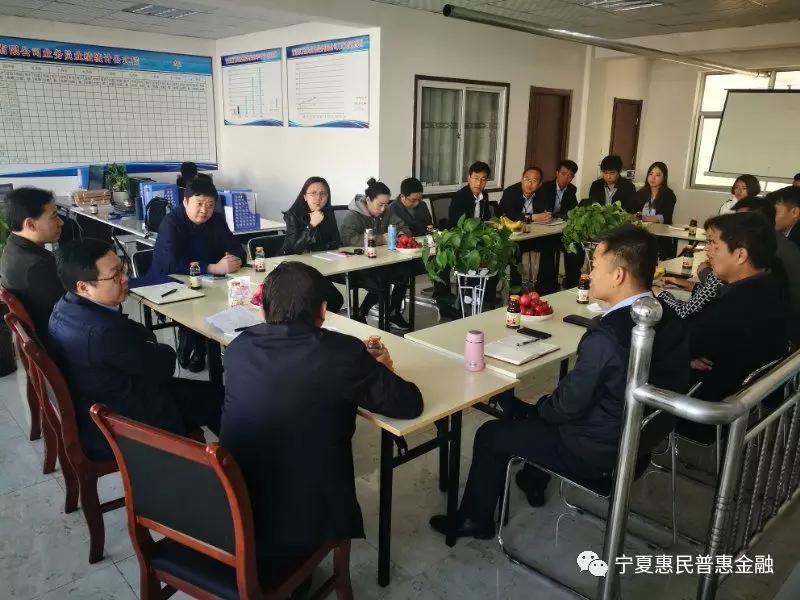 4月28日,东方邦信融通控股股份有限公司党委书记、董事长杨光、副总经理李崴一行到宁夏东方惠民小额贷款股份有限公司和政公司调研,东方惠民公司董事长龙治普、总经理石健陪同调研。杨光一行听取了和政公司负责人的工作汇报,对东方惠民的运营模式十分认可,对和政公司成立以来取得的成绩给予了充分肯定,杨光要求和政公司立足本土、立足贫困,进一步提高管控能力、防范运营风险,助推和政县精准扶贫、精准脱贫。