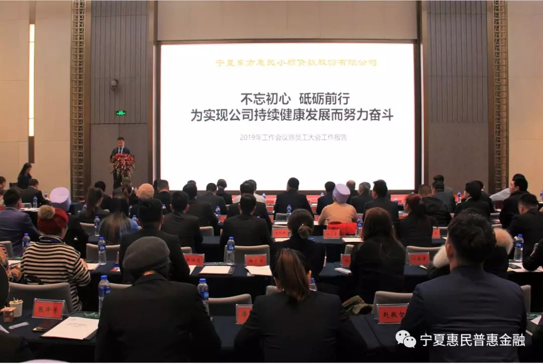 1月15日,宁夏东方惠民小额贷款股份有限公司在银川召开2019年工作会议暨员工大会,总结2018年工作,安排部署2019年工作,特邀嘉宾、公司领导、公司全体员工、员工家属代表共210人参加会议。